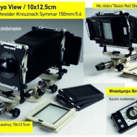 Toyo View, μεγάλο φορμά 10×12,5cm, φακός Schneider Kreuznach Symmar 150mm/5.6, με πλάτη Quick Roll Slider 6x9cm. Δώρο φλασόμετρο Bowens.