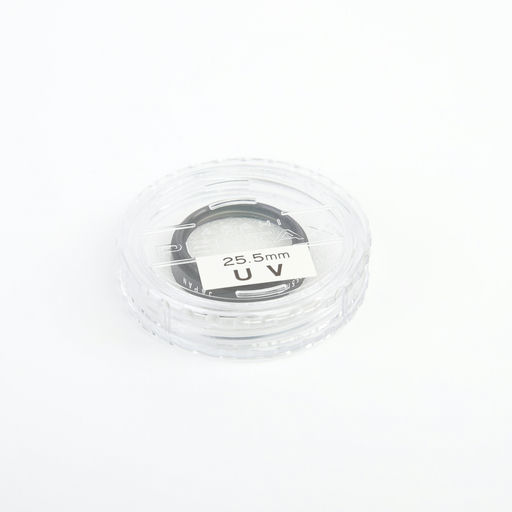 Protective UV filter for compact lenses, reduces haze and protects lens coating, vintage 25.5mm size.