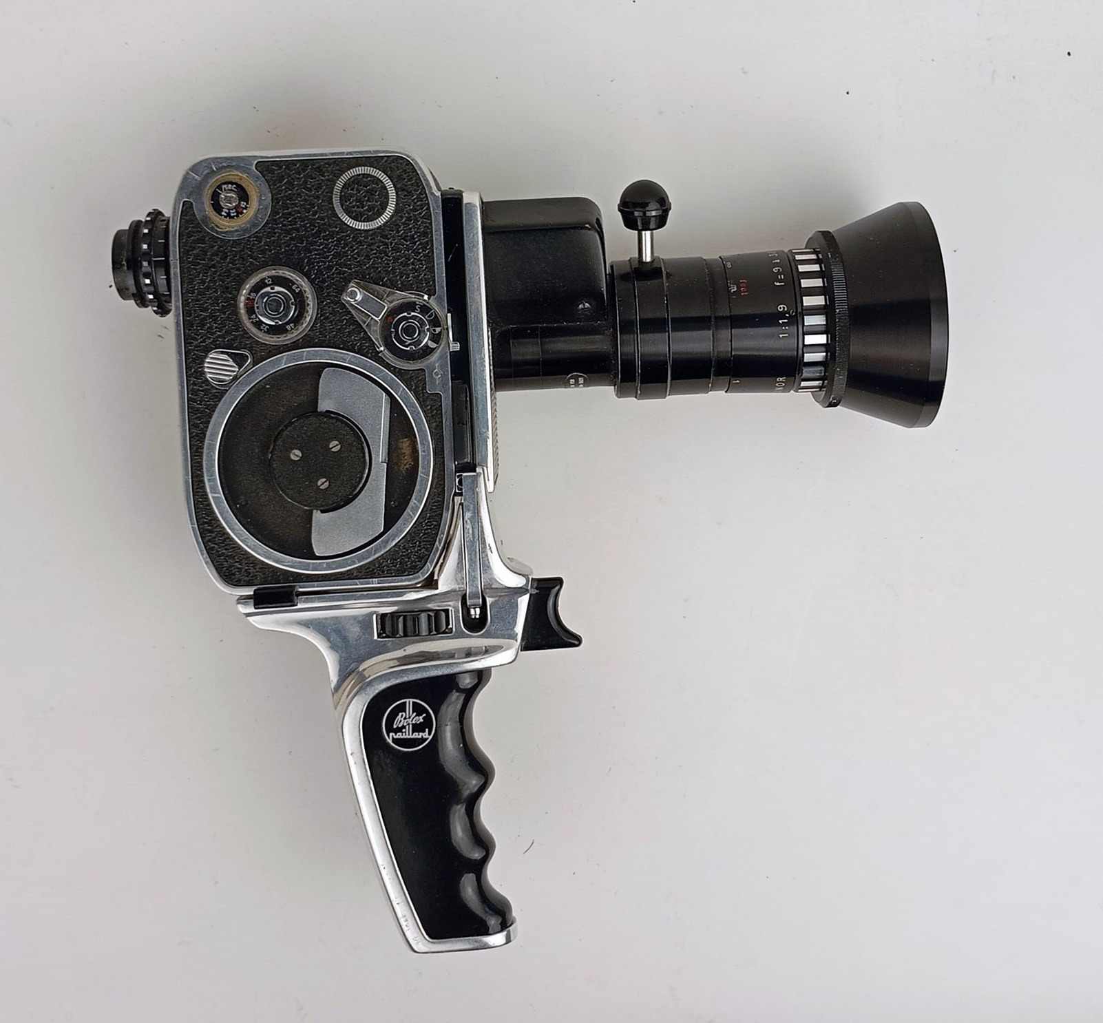 This iconic Swiss-made 8mm cine camera features a zoom lens and ergonomic grip, popular among vintage filmmakers for its quality and portability.