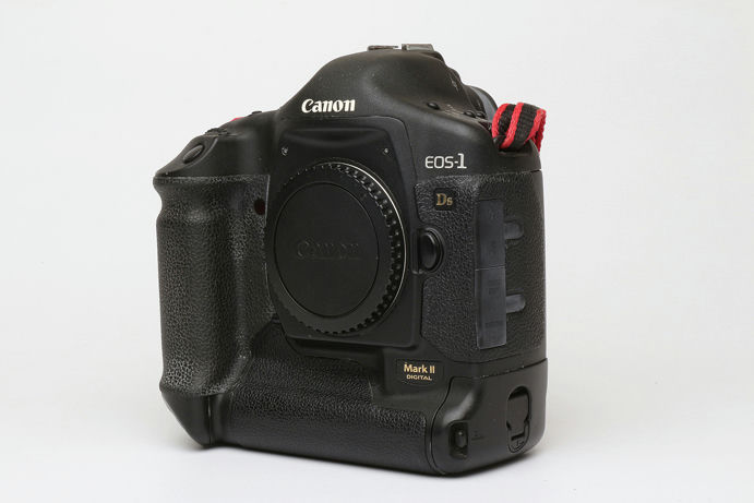 The Canon EOS-1Ds Mark II, launched in 2004, was Canon’s flagship professional full-frame DSLR. Building on the original 1Ds, it featured a 16.7-megapixel CMOS sensor, offering class-leading resolution for studio, landscape, and commercial photographers at the time. It boasted a rugged, weather-sealed magnesium alloy body inherited from the 1D Mark II (APS-H sports model), a high-performance 45-point AF system, and the DIGIC II image processor for improved speed and image quality. It was a benchmark for professional image quality in its era.