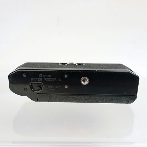 The Canon Power Winder A was a motorized film advance accessory designed primarily for the extremely popular Canon A-series cameras, such as the AE-1, AT-1, AV-1, and AL-1 (introduced 1978). It attached to the base of the camera and provided continuous shooting at up to 2 frames per second, as well as single-frame advance. This allowed the photographer to keep their eye to the viewfinder and shoot sequences more rapidly without needing to manually advance the film lever. It was powered by AA batteries.