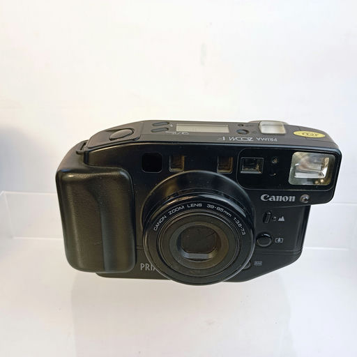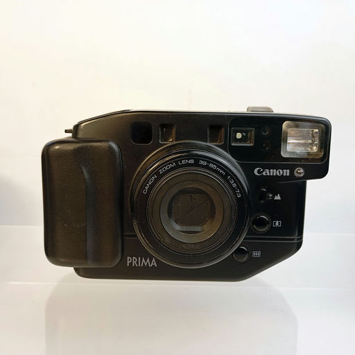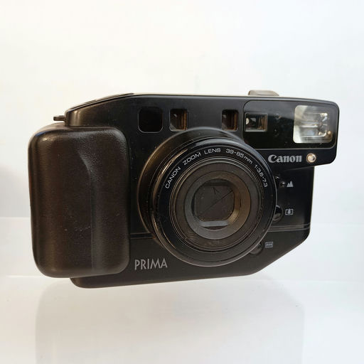 Canon Prima Zoom F is a compact 35mm point-and-shoot film camera from Canon, designed for simple and reliable everyday photography. It features a versatile zoom lens, fully automatic exposure and focus, built-in flash, and a solid, user-friendly design. An excellent choice for film beginners or anyone looking for a dependable vintage compact camera.
