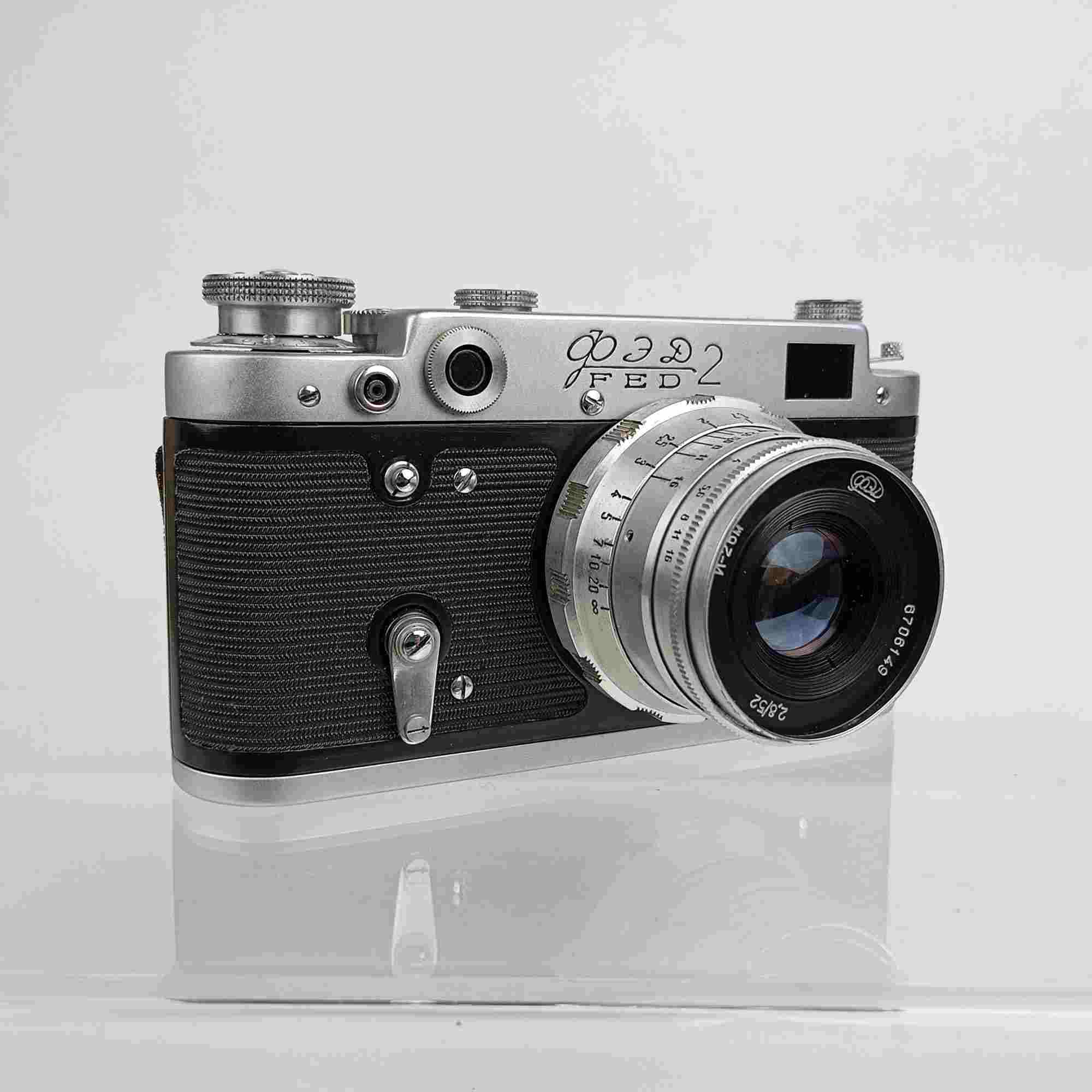 The FED 2 is a Soviet rangefinder camera developed in the mid-20th century, often bundled with a 52mm F2.8 lens. It features a longer rangefinder base than the original FED, offering better focusing accuracy.
