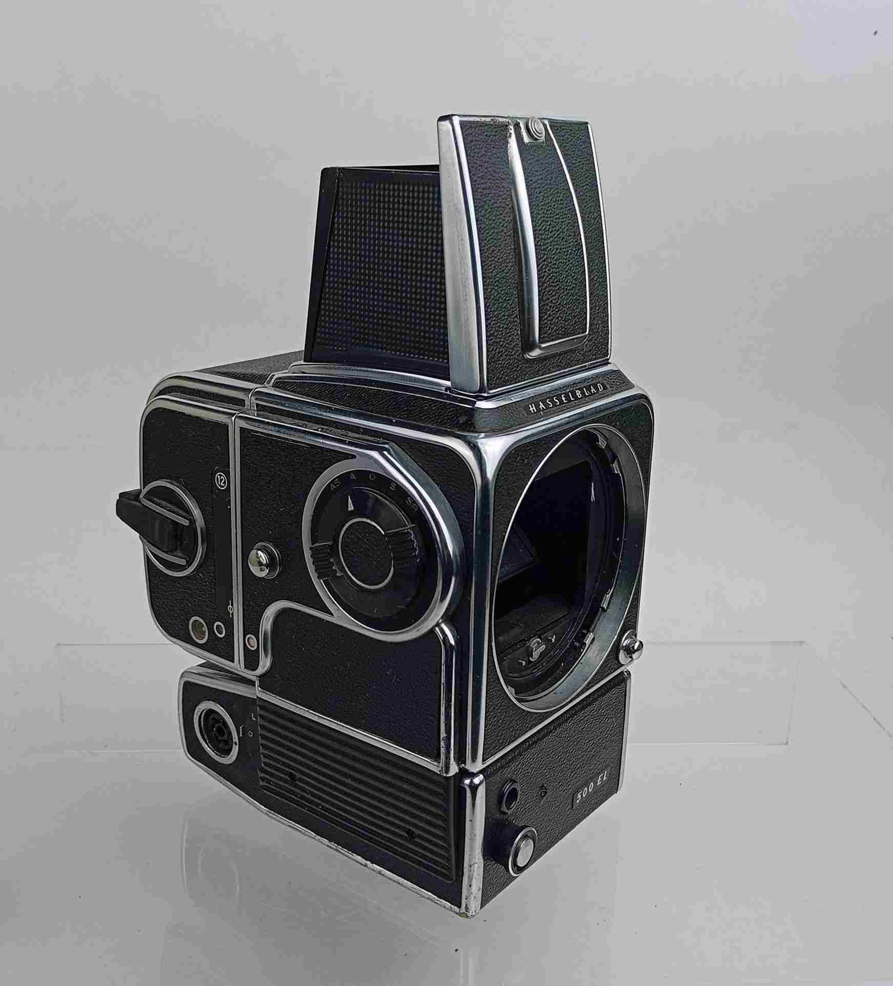 – Medium format SLR (6×6 cm) with motor drive – Electric film advance and shutter cocking – Interchangeable components: lenses, backs, viewfinders – Shutter speeds: 1s to 1/500s + B – Produced from 1970 to 1984