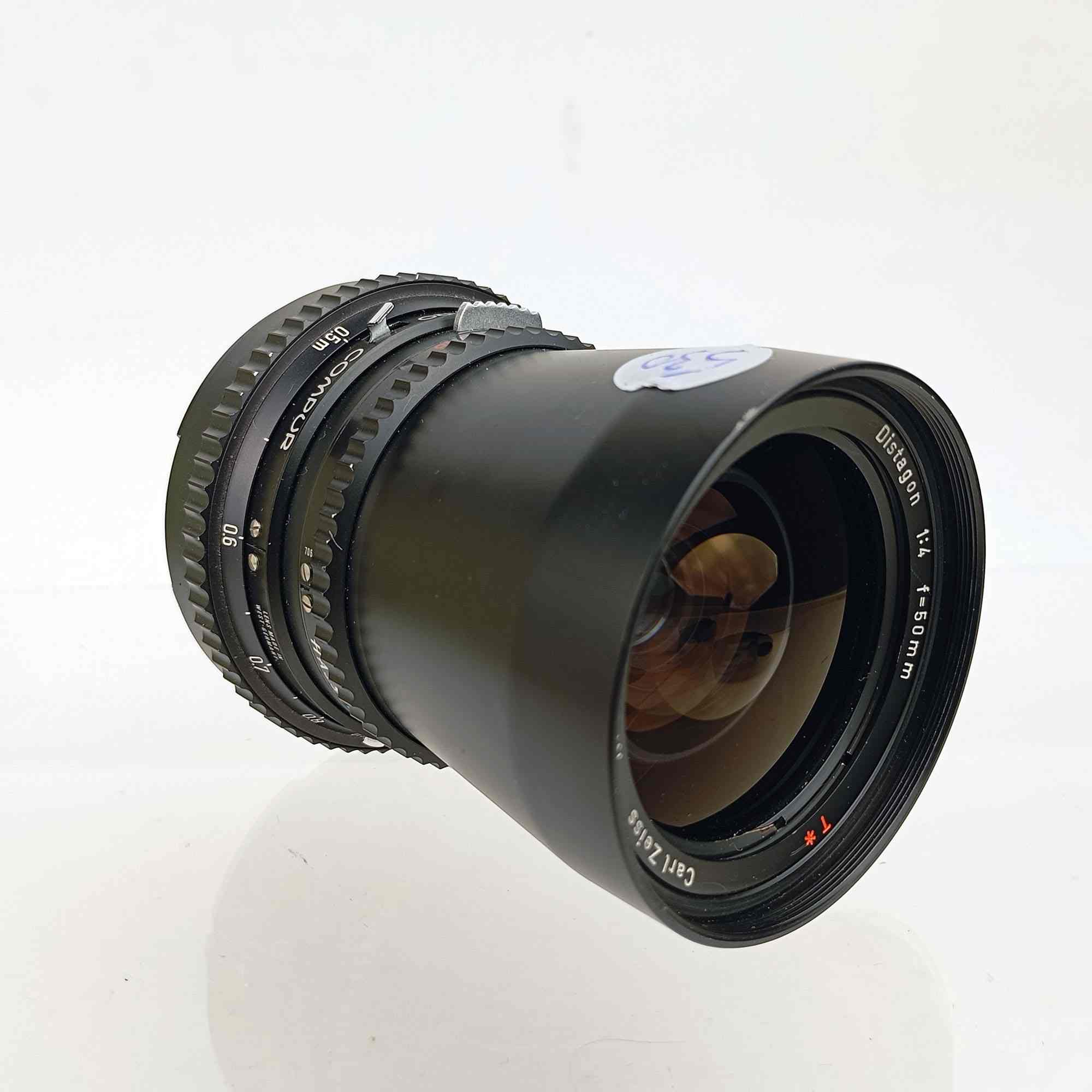 Complete black Hasselblad 500CM kit with wide-angle lens, film back, and waist-level finder.