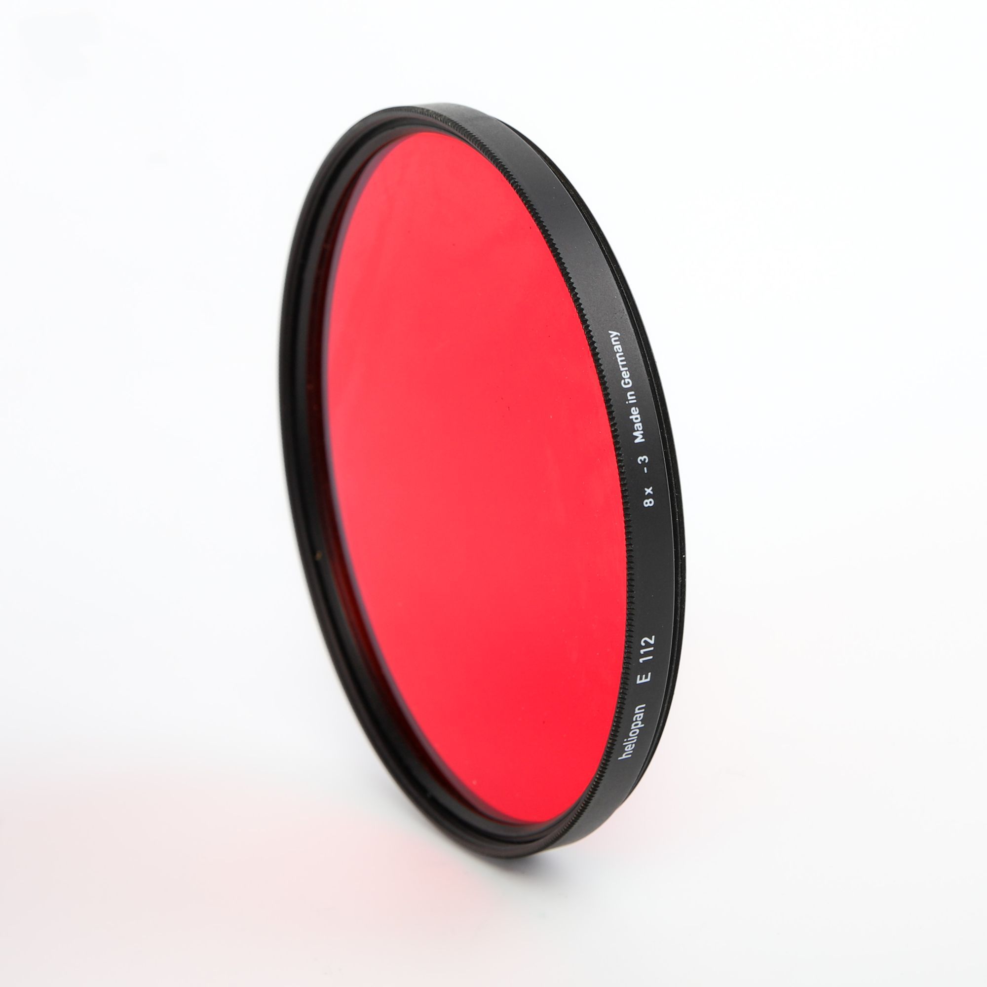 A high-quality German-made red filter from Heliopan, used in black and white photography to increase contrast between sky and clouds.