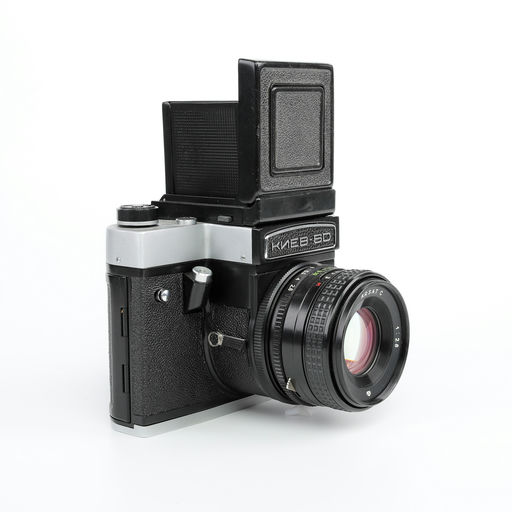 This variant of the Kiev 60 includes a standard 80mm lens, making it a complete kit for medium format photography. Its simplicity and compatibility with a wide range of lenses made it a favorite for budget-conscious photographers.
