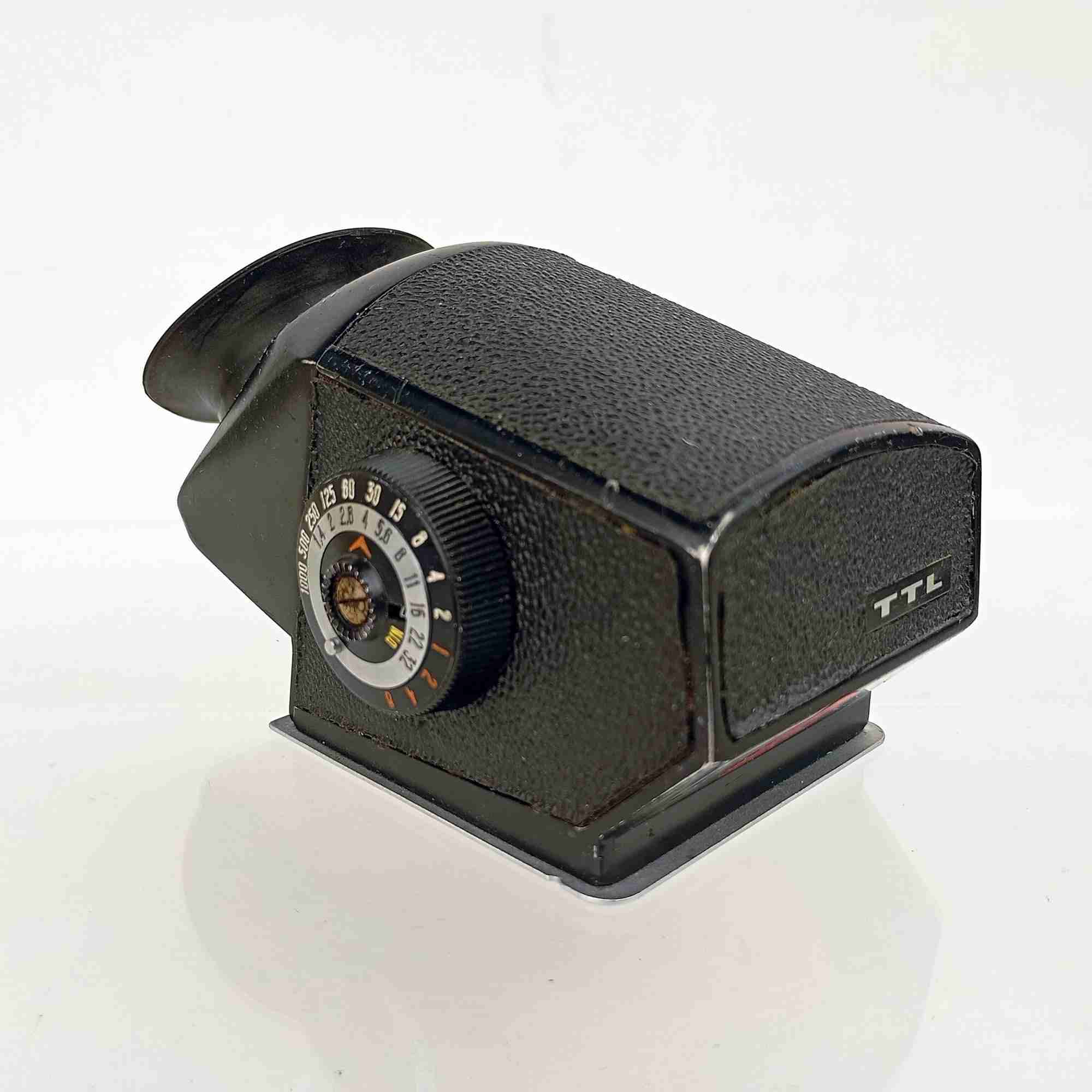 The Kiev 88 AE Prism Finder is an eye-level viewfinder with built-in metering designed for the Kiev 88 medium format camera. It improves handling and enables TTL metering for more accurate exposures.