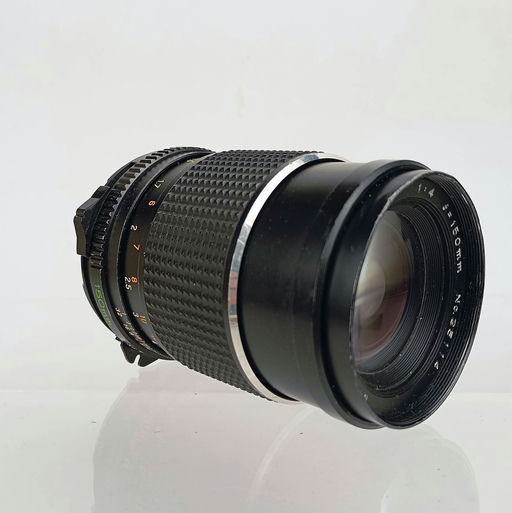 Long focal enlarger lens from Minolta’s Rokkor line, used for specific enlarging setups.