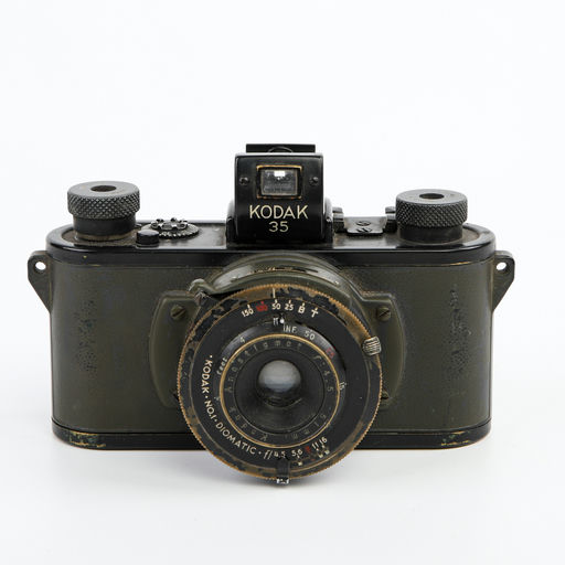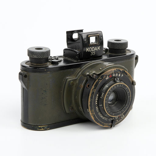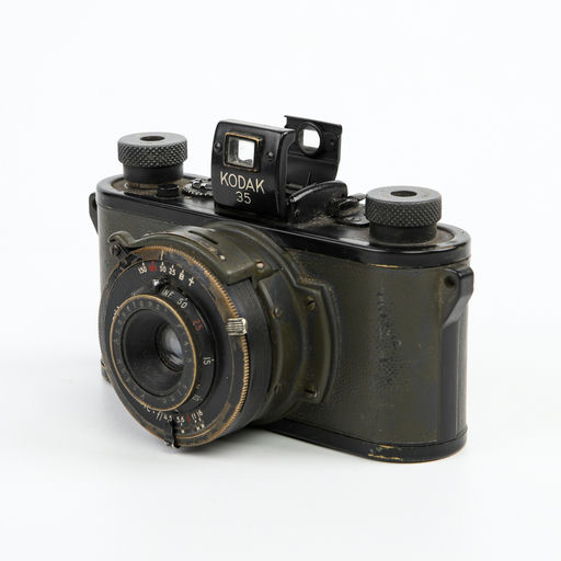 This rare variant of the Kodak 35 features a military green body, likely used for government or service applications during mid-20th century.