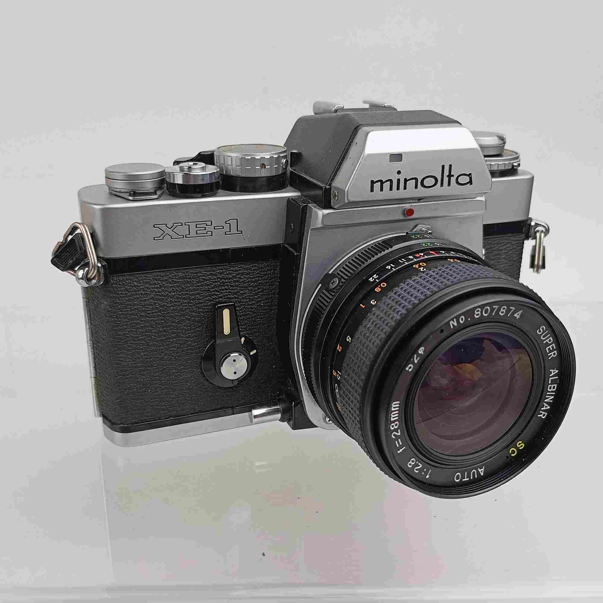 The Minolta XE-1 (or XE-7 in North America), released in 1974, was a high-end electronic SLR developed in collaboration with Leica (forming the basis for the Leica R3). It featured aperture-priority auto exposure, a smooth electronic shutter, and excellent build quality. A very refined manual focus camera.