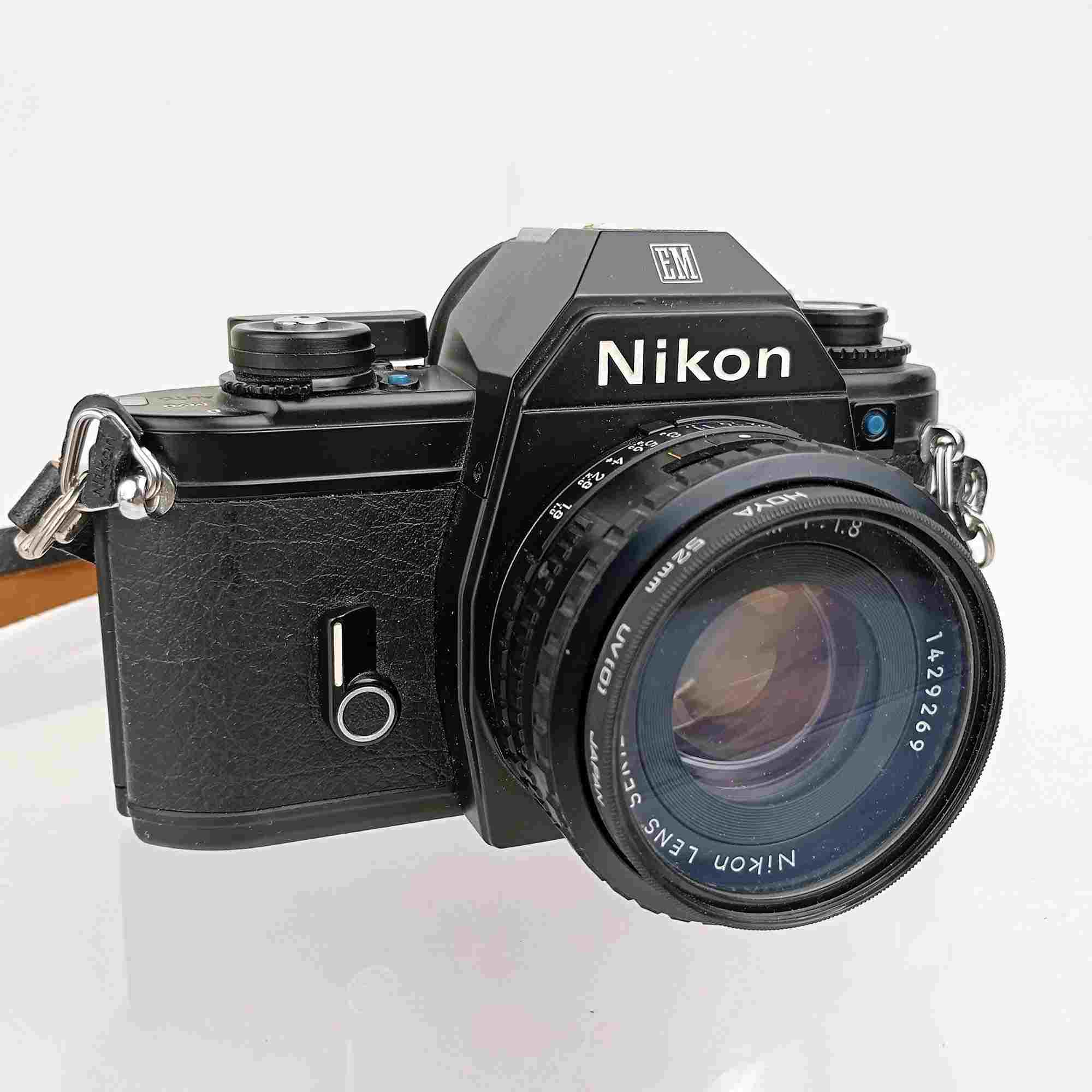 This setup pairs the compact and lightweight Nikon EM with the sharp and widely acclaimed Nikon 50mm F1.8 AI-S lens. A great starting point for film photography enthusiasts.