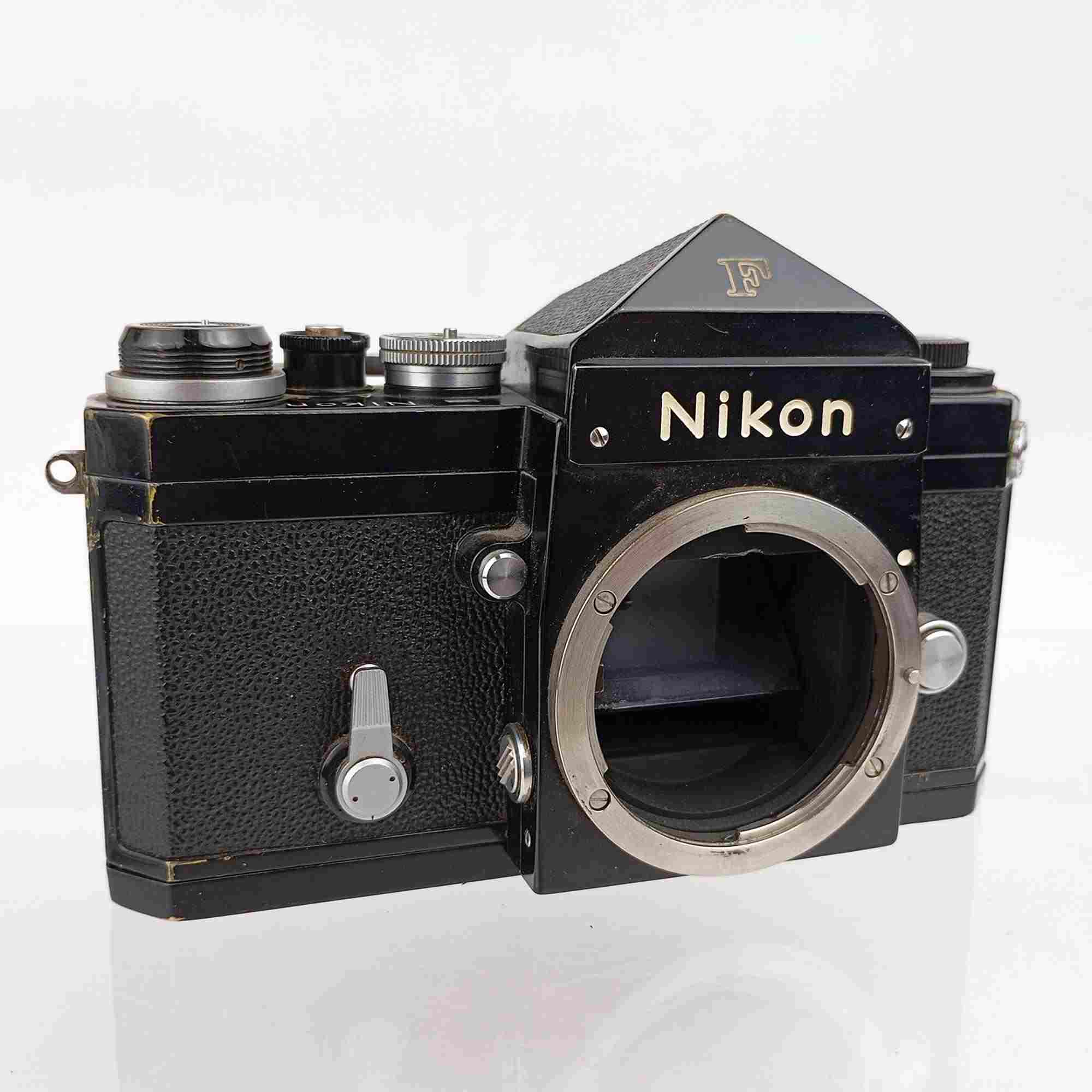 A rare black-bodied Nikon F paired with a plain prism, representing the raw, mechanical essence of early Nikon SLRs. Highly collectible for its finish and classic aesthetic.