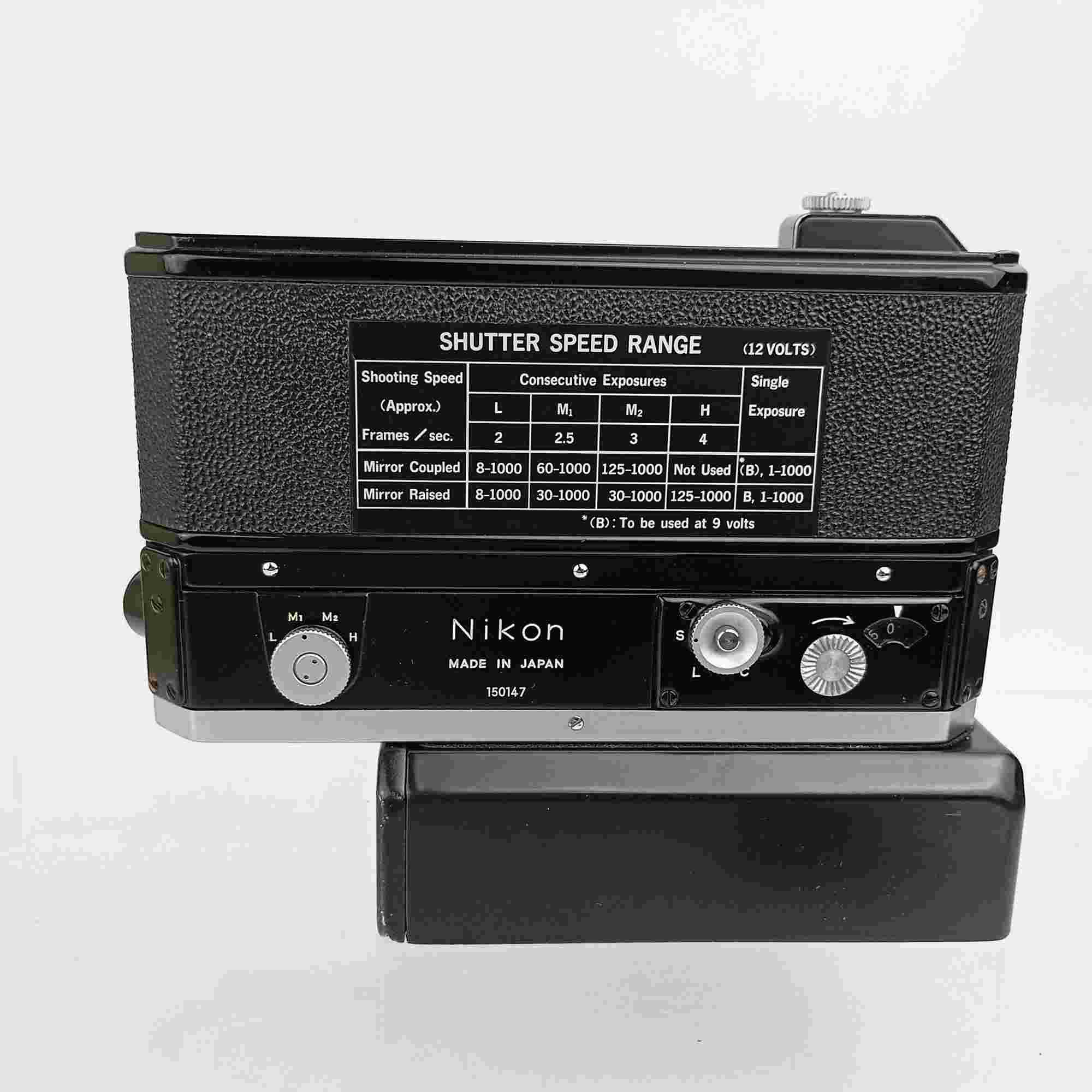 An early motorized drive unit for the original Nikon F, a mechanical marvel increasing frame rates in press shooting.