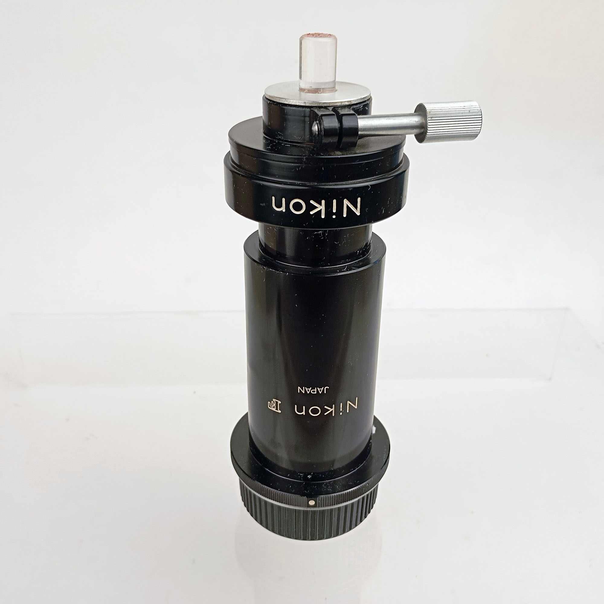 Adapter enabling Nikon F-mount cameras to be used with microscopes for photomicrography, ideal for science and research.