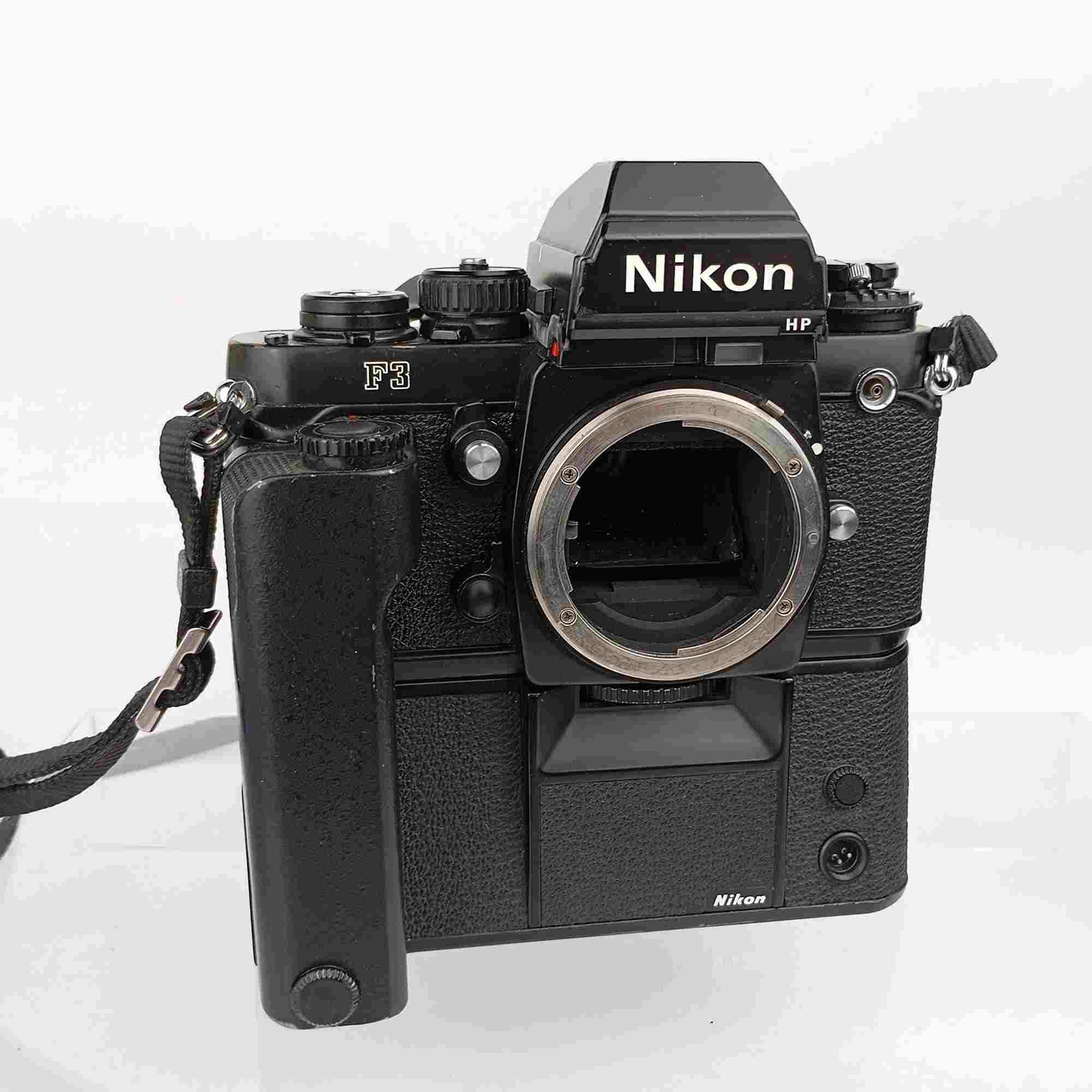 This kit includes the F3 HP body and MD-4 motor drive, making it a workhorse for sports and press photographers requiring quick film advance.