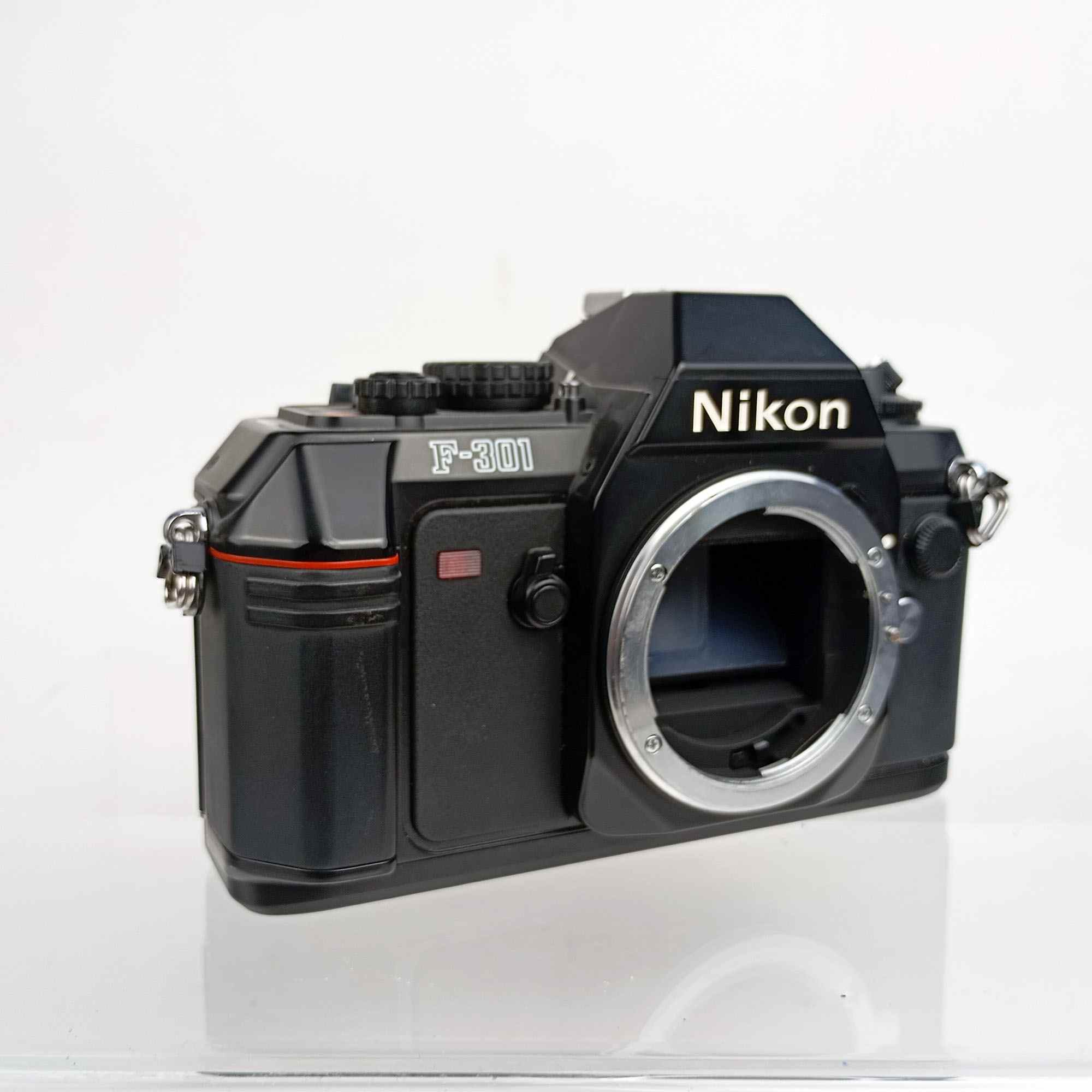 The Nikon F301, also known as the N2000 in the U.S., was the first Nikon SLR to feature built-in motor drive, paving the way for integrated film transport mechanisms in later models.