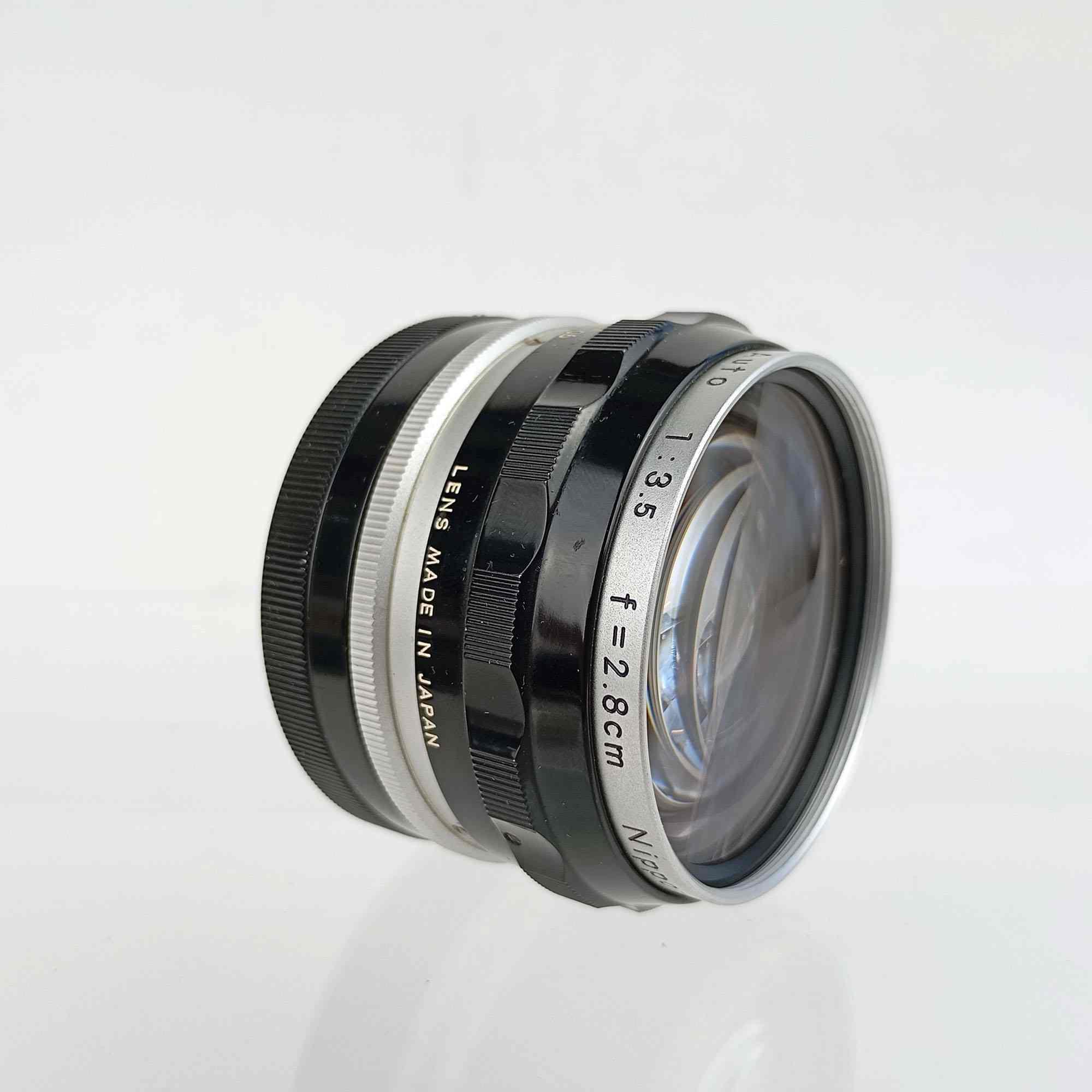 A rare early wide-angle Nikon lens from the ‘H’ series, highly collectible due to its unique optics and vintage build.