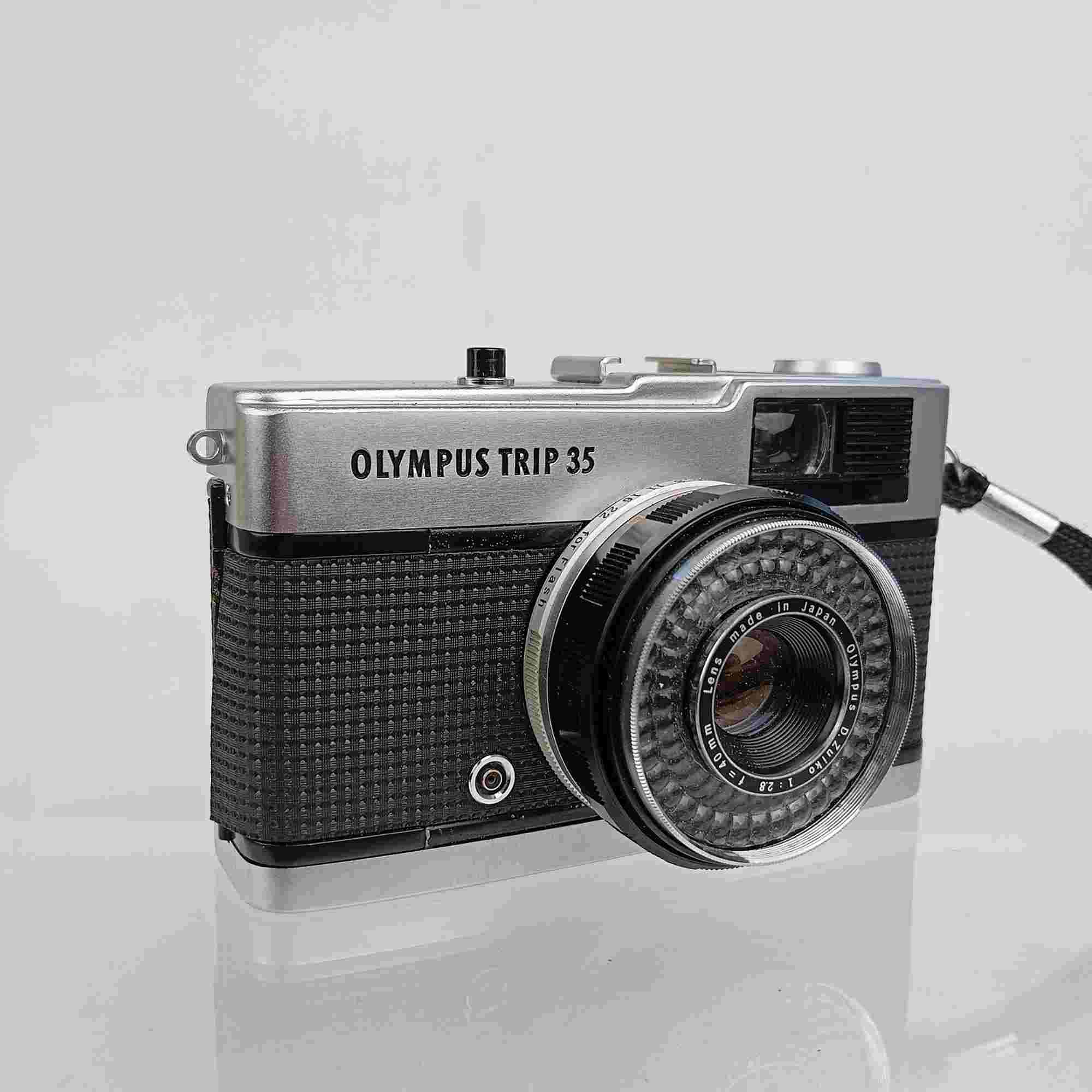 The Olympus Trip 35 Cased is a notable Compact 135 camera from Olympus, known within the Olympus lineup. An iconic and incredibly popular 35mm compact camera produced by Olympus from 1967 to 1984. Famous for its simplicity, sharp Zuiko lens, solar-powered selenium light meter (no batteries needed), and zone focusing system. Over ten million were sold. Serial number (if available): l.