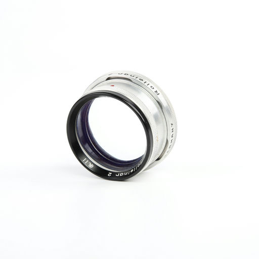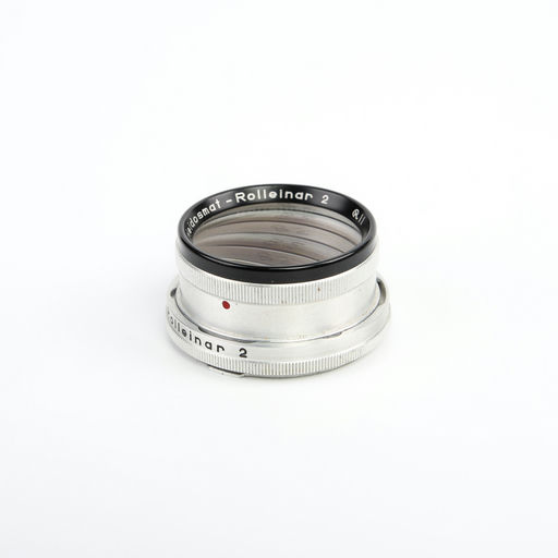 The Rolleinar-2 B-II is a mid-strength close-up lens accessory for Rolleiflex and Rolleicord cameras with Bayonet II mounts. It is used to achieve closer focusing distances and comes with a protective leather case.