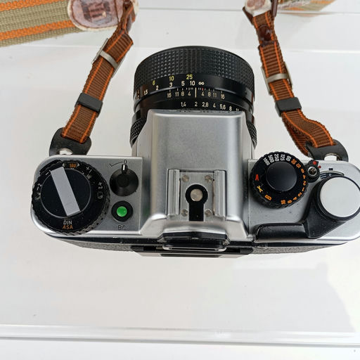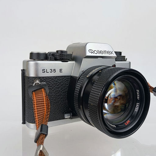 Advanced SL35 E SLR body with premium Zeiss Planar lens, top-tier setup for serious film photographers.