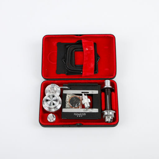 This specific Rolleikin Set features a distinctive red-lined case and is fully equipped for 35mm adaptation. It’s a collector‚Äôs favorite due to its condition and unique case design.