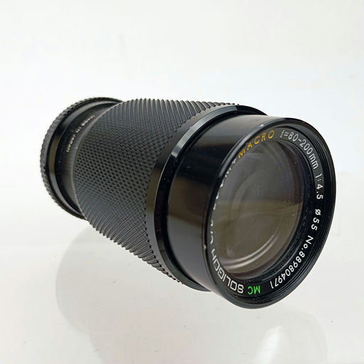 Soligor was a well-known brand of third-party lenses, often positioned in the mid-range market segment. The Soligor MC Zoom Macro 80-200mm f/4.5 for Canon FD offered a versatile telephoto zoom range with the added benefit of a macro focusing capability (usually achieved by a separate ring or switch, offering moderate magnification). The f/4.5 maximum aperture was common for zooms in this class. Soligor lenses were generally considered decent performers for their price, sourced from various Japanese manufacturers over the years.