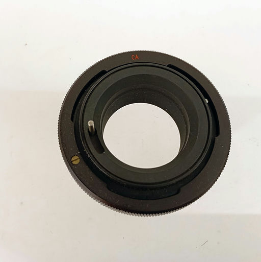 The Vivitar T4 system was an early interchangeable mount system (preceding Adaptall) from the late 1960s/early 1970s. T4 lenses required a specific T4 adapter to connect to a camera body. This item is the T4 adapter specifically designed to mount a Vivitar T4 lens onto a Canon FD mount camera. It allowed photographers who owned T4 lenses to use them on the (then new) Canon FD system cameras like the F-1 and FTb. These adapters contain the necessary mechanical linkages for automatic diaphragm operation.