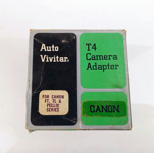 – Adapter Type: Vivitar T4 lens mount to Canon FD camera body.