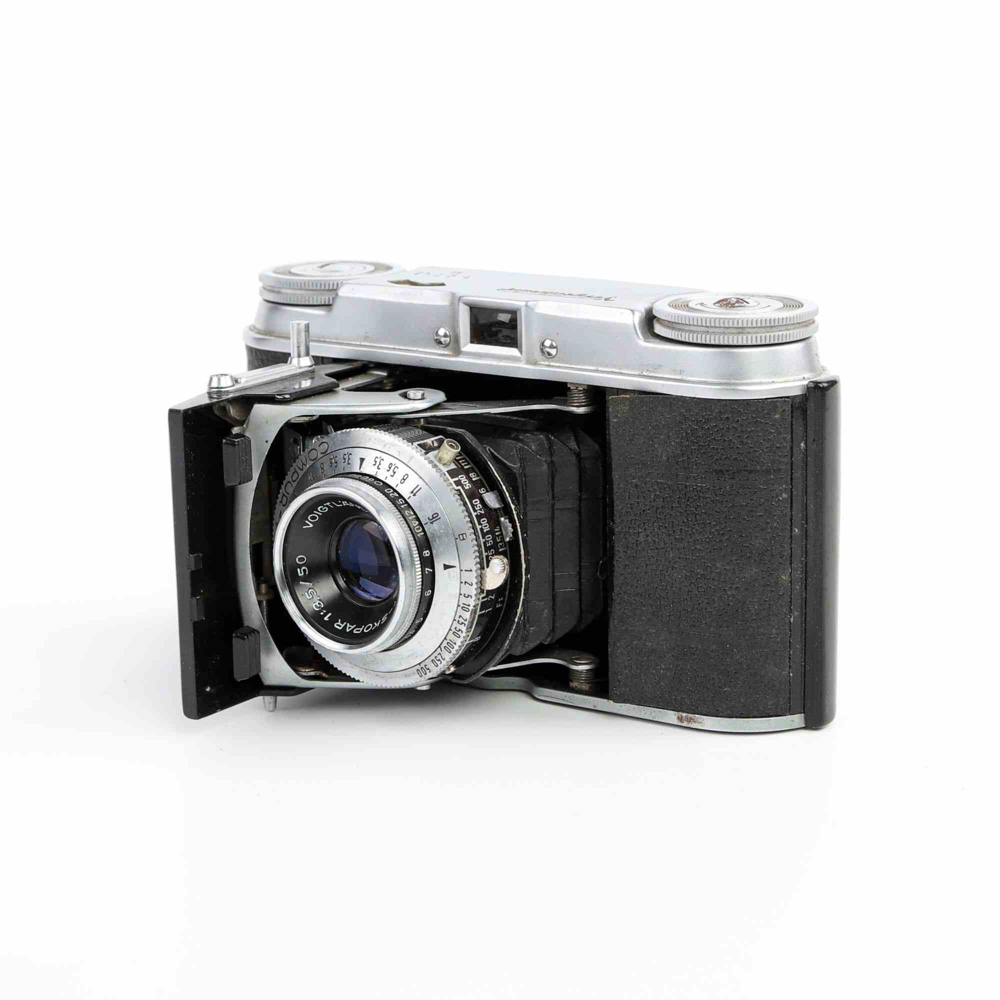 Compact post-war folding 35mm camera with Color Skopar lens, designed for portability and sharp results.